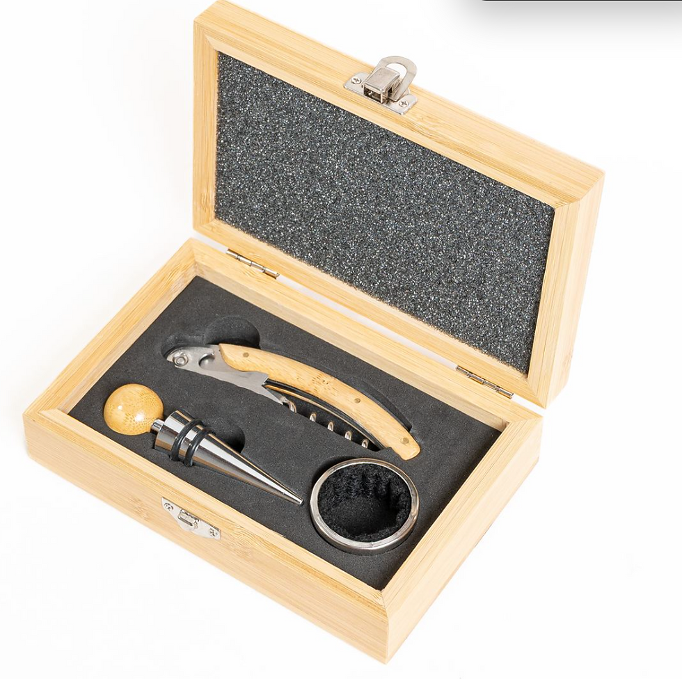 21194 SET VINO HL7631 CON 2 COPAS Y DESTAPADOR EN CAJA BAMBOO
